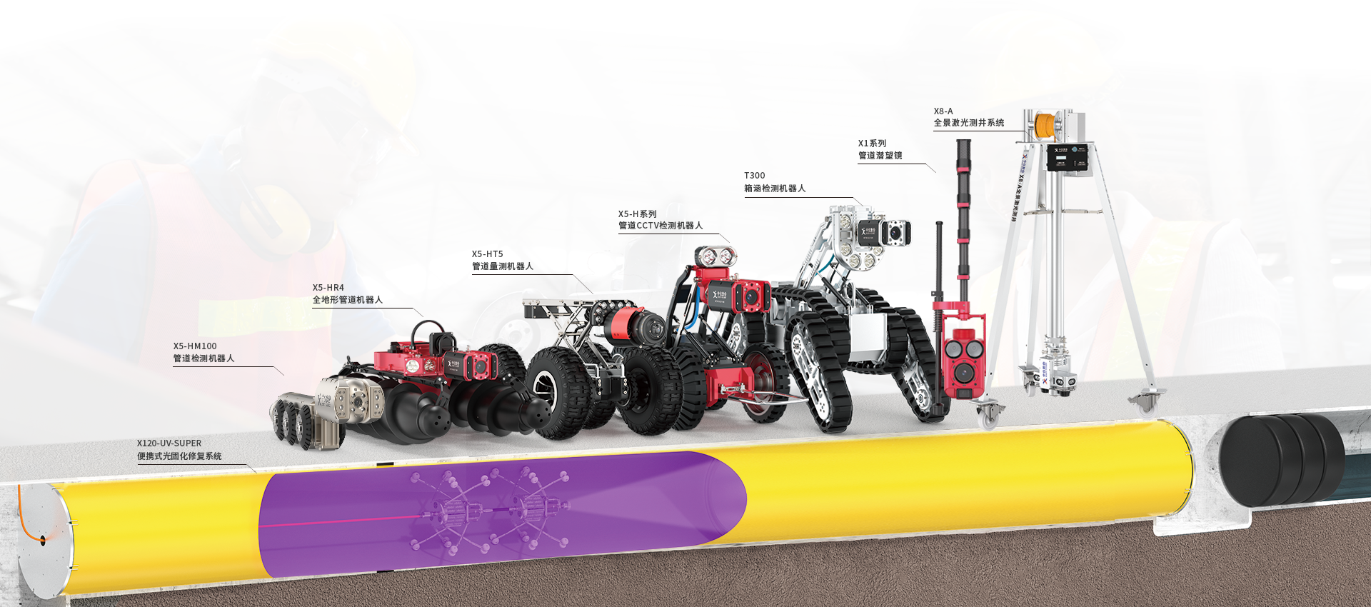 X120-UV便攜式光固化修復系統由移動式控制系統、傳輸電纜、紫外光燈架、高清鏡頭及輔助工具等組成。主要適用于市政管網非開挖修復工程,修復管徑DN200-DN1600。體積小、重量輕、外接發電機即可工作;同時又可與車輛分離,在狹小街道作業。
